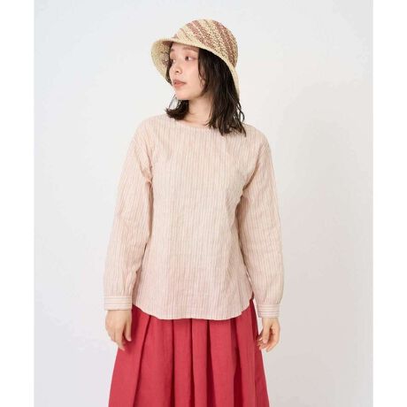 さらっとした肌触りの良い素材とストライプ柄を活かした、シンプルなプルオーバーデザイン。後ろボタン開きのクルーネックで着脱しやすく、体のラインを拾わない程よいゆとりのあるシルエットに仕上げました。ラウンドヘムでレイヤードした際の裾見せもバランスよく決まるデザインです。