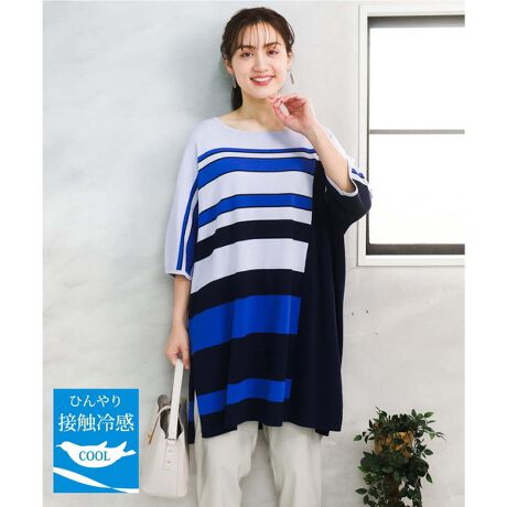気になる二の腕をカバーしてくれる袖丈と、ヒップ周りをさりげなくカバーするチュニック丈で、リラックス感のある着こなしに。