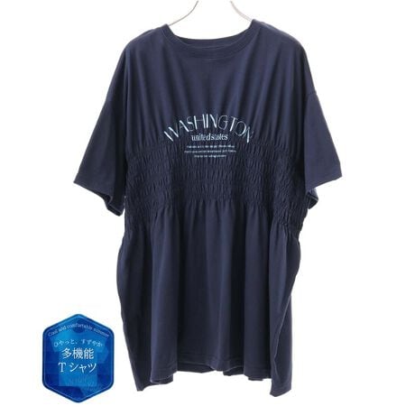 胸元のシャーリングが自然な立体感を生み、スタイルアップ効果も期待できる長め丈のTシャツ。