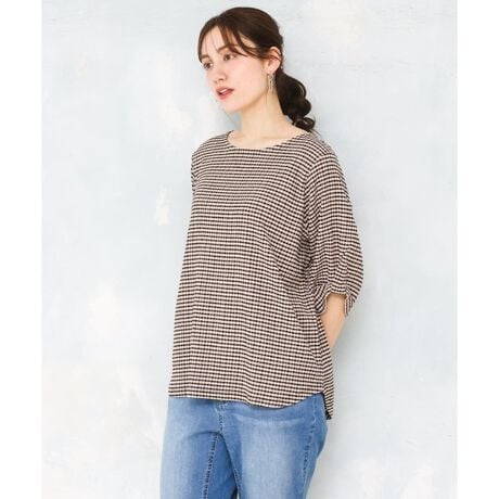 ◆二の腕カバーも叶う大人のギンガムトップス◆