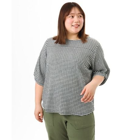 ◆二の腕カバーも叶う大人のギンガムトップス◆