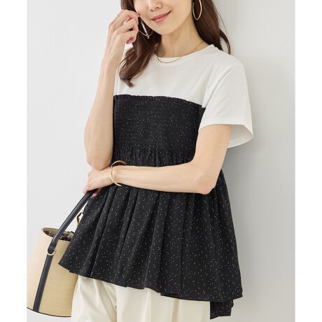 ・さらりとした肌触りのカットソーに、軽やかな布帛を組み合わせた異素材デザイン。