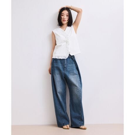 汎用性の高い程よくワイドなデニムパンツ。