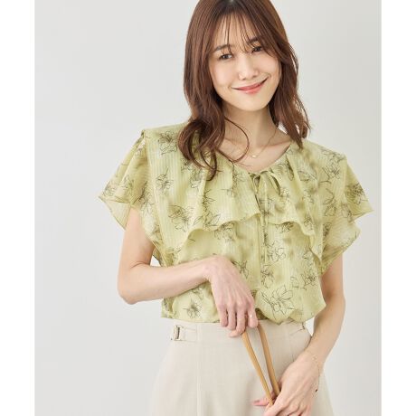 ・ドレープ性を活かした、顔周りを華やかに見せるラッフルカラー。