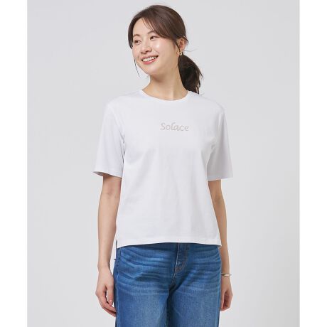 ■デザイン「安らぎ・癒し」を意味するロゴを、立体感のあるチェーン刺繍で表現したTシャツ。刺繍の配色は柔らかく女性らしいトーンに抑え、小さなスパンコールを散りばめることで、動くたびに上品に煌めくアクセントを加えました。コンパクトな丈感に仕上げているため、ボリュームのあるスカートやワイドパンツとも相性が良く、すっきりとしたバランスで着こなしていただけます。1枚着としてはもちろん、ジャケットやカーディガンのインナーからロゴを覗かせるスタイルもおすすめです。カラーは、やわらかい印象のアイボリー(#001)、1枚でパッと華やぐルビーレッド(#010)、肌なじみの良いベージュ(#033)、こなれた印象のダークブラウン(#035)、爽やかな印象のサックスブルー(#073)の3色展開です。