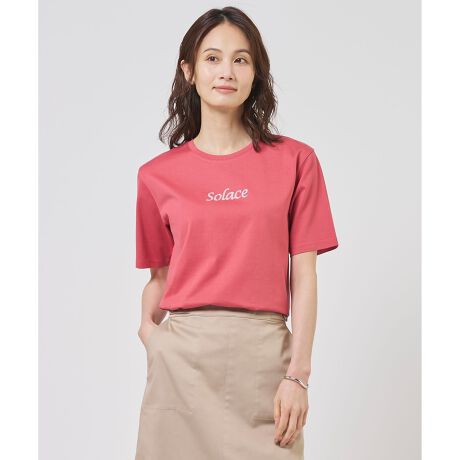 ■デザイン「安らぎ・癒し」を意味するロゴを、立体感のあるチェーン刺繍で表現したTシャツ。刺繍の配色は柔らかく女性らしいトーンに抑え、小さなスパンコールを散りばめることで、動くたびに上品に煌めくアクセントを加えました。コンパクトな丈感に仕上げているため、ボリュームのあるスカートやワイドパンツとも相性が良く、すっきりとしたバランスで着こなしていただけます。1枚着としてはもちろん、ジャケットやカーディガンのインナーからロゴを覗かせるスタイルもおすすめです。カラーは、やわらかい印象のアイボリー(#001)、1枚でパッと華やぐルビーレッド(#010)、肌なじみの良いベージュ(#033)、こなれた印象のダークブラウン(#035)、爽やかな印象のサックスブルー(#073)の3色展開です。