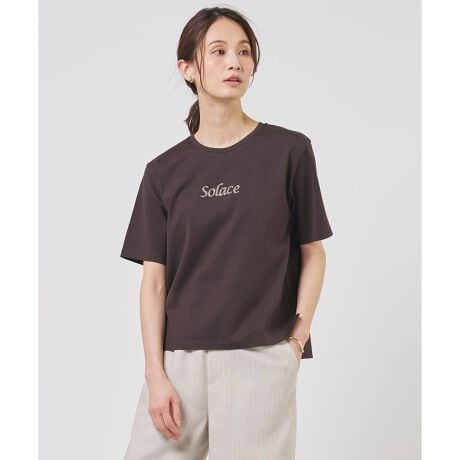 ■デザイン「安らぎ・癒し」を意味するロゴを、立体感のあるチェーン刺繍で表現したTシャツ。刺繍の配色は柔らかく女性らしいトーンに抑え、小さなスパンコールを散りばめることで、動くたびに上品に煌めくアクセントを加えました。コンパクトな丈感に仕上げているため、ボリュームのあるスカートやワイドパンツとも相性が良く、すっきりとしたバランスで着こなしていただけます。1枚着としてはもちろん、ジャケットやカーディガンのインナーからロゴを覗かせるスタイルもおすすめです。カラーは、やわらかい印象のアイボリー(#001)、1枚でパッと華やぐルビーレッド(#010)、肌なじみの良いベージュ(#033)、こなれた印象のダークブラウン(#035)、爽やかな印象のサックスブルー(#073)の3色展開です。