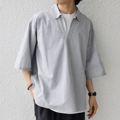 ドライな生地感が夏にピッタリ!汎用性の高いスキッパーデザインのプルオーバーシャツ