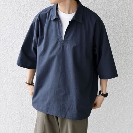 ドライな生地感が夏にピッタリ!汎用性の高いスキッパーデザインのプルオーバーシャツ