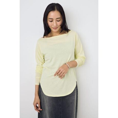 ■シアーカットオフショルトップス■ポイント軽やかな透け感が魅力の、オフショルダーとしても着用できるシアーTシャツ。女性らしい抜け感を演出できる、2WAY仕様のデザイントップスです。■ディテール薄手で軽やかなシアー素材を使用し、柔らかく肌なじみの良い着心地に仕上げました。ネックラインは肩を落としてオフショルダーとしても着用でき、スタイリングの幅が広がるデザイン。程よくゆとりのあるシルエットで、身体のラインを拾いにくくリラックス感のある着用感です。透け感のある素材が軽やかな印象を与え、シーズンムードを高めてくれる1枚です。■スタイリングキャミソールやタンクトップをインナーに合わせたレイヤードスタイルがおすすめ。デニムやカーゴパンツと合わせたカジュアルスタイルはもちろん、スカートと合わせて女性らしく着こなすのも◎。オフショルダーで着用すれば、抜け感のあるトレンドスタイルを楽しめます。■生地全方向に非常に伸びが良く、かつ型崩れしにくい素材です。40番手というやや細めの糸で編まれているため、薄手で軽く上品でクリーンな透け感がありつつも独特のフィット感があるのでストレスフリーな着心地です。甘編みなので、生地のひっかけに注意してください。また、生地の一部にネップが発生していることがありますが、生地の特性です。透け感:あり裏 地:なし伸縮性:あり光沢感:なし[注意事項]※画像の商品はサンプルです。実際の商品と仕様、加工が若干異なる場合があります。※画像の商品は光の照射や角度、お使いのモニター環境により、実物と色味が異なる場合がございます。※着用、お取り扱いの際は、アテンションタグをご確認ください。