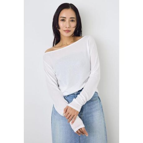 ■シアーカットオフショルトップス■ポイント軽やかな透け感が魅力の、オフショルダーとしても着用できるシアーTシャツ。女性らしい抜け感を演出できる、2WAY仕様のデザイントップスです。■ディテール薄手で軽やかなシアー素材を使用し、柔らかく肌なじみの良い着心地に仕上げました。ネックラインは肩を落としてオフショルダーとしても着用でき、スタイリングの幅が広がるデザイン。程よくゆとりのあるシルエットで、身体のラインを拾いにくくリラックス感のある着用感です。透け感のある素材が軽やかな印象を与え、シーズンムードを高めてくれる1枚です。■スタイリングキャミソールやタンクトップをインナーに合わせたレイヤードスタイルがおすすめ。デニムやカーゴパンツと合わせたカジュアルスタイルはもちろん、スカートと合わせて女性らしく着こなすのも◎。オフショルダーで着用すれば、抜け感のあるトレンドスタイルを楽しめます。■生地全方向に非常に伸びが良く、かつ型崩れしにくい素材です。40番手というやや細めの糸で編まれているため、薄手で軽く上品でクリーンな透け感がありつつも独特のフィット感があるのでストレスフリーな着心地です。甘編みなので、生地のひっかけに注意してください。また、生地の一部にネップが発生していることがありますが、生地の特性です。透け感:あり裏 地:なし伸縮性:あり光沢感:なし[注意事項]※画像の商品はサンプルです。実際の商品と仕様、加工が若干異なる場合があります。※画像の商品は光の照射や角度、お使いのモニター環境により、実物と色味が異なる場合がございます。※着用、お取り扱いの際は、アテンションタグをご確認ください。