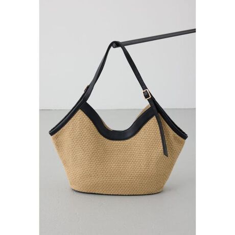 ■フェイクレザーパイピング雑材トートバッグ■ポイント立体的なフォルムが目をひく雑材トートバッグ。ナチュラルな素材感と洗練されたシルエットで、シーズンムードを高める一品です。■ディテール軽やかな雑材素材を使用し、柔らかく丸みのあるフォルムに仕上げました。開口部は程よく広がり、荷物の出し入れもしやすい設計。配色のパイピングとハンドルデザインが全体を引き締め、カジュアルになりすぎない印象に。肩掛けしやすい長さで、デイリー使いにも適したサイズ感です。■スタイリングリネンワンピースやサマードレスと合わせてリゾートライクに、デニムやワイドパンツと合わせて大人カジュアルにも。シンプルなコーディネートに取り入れるだけで、季節感とこなれ感をプラスします。※お取り扱い上のご注意濡れたまま放置したり、他の素材と密着させないように保管してください。素材成分によっては移染することがあります。[注意事項]※画像の商品はサンプルです。実際の商品と仕様、加工が若干異なる場合があります。※画像の商品は光の照射や角度、お使いのモニター環境により、実物と色味が異なる場合がございます。※着用、お取り扱いの際は、アテンションタグをご確認ください。