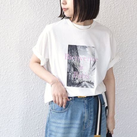 パリの街並みのフォトプリントを施した大人TEE。