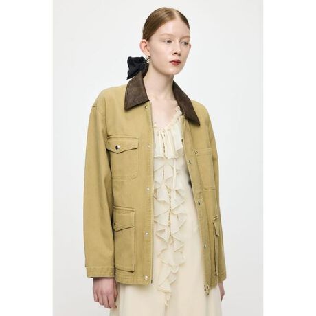【COTTON CHORE JACKET/ コットン チョアジャケット】■ポイントワークテイストをベースにしたコットンチョアジャケット。程よくルーズなシルエットと、襟にあしらった合皮素材がカジュアルジャケットに上品さとアクセントをプラスします。■ディテール身頃は風合いのあるコットン素材を使用し、デイリーに着やすい仕上がり。フロントには実用性の高いポケットを配置し、襟部分は合皮仕様で異素材ミックスの表情を演出。さっと羽織れる軽やかさも魅力です。■スタイリングデニムやチノパンと合わせて王道カジュアルに。ワンピースや柄ボトムと組み合わせれば、程よく抜け感のある大人のカジュアルスタイルが完成します。■商品のお気に入り登録お気に入りアイテムの再入荷・在庫1点などの通知を受け取ることができます。■ブランドのお気に入り登録新作アイテムの入荷や人気アイテムの再入荷、おすすめトピックスなど、いち早くブランドの情報を受け取ることができます。[注意事項]※画像の商品はサンプルです。実際の商品と仕様、加工が若干異なる場合があります。※画像の商品は光の照射や角度、お使いのモニター環境により、実物と色味が異なる場合がございます。※着用、お取り扱いの際は、アテンションタグをご確認ください。