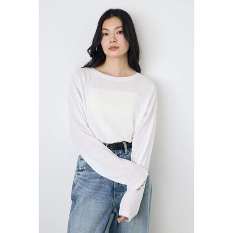 ■シアーカットトップス■ポイント軽やかな透け感が魅力の、ゆったりシルエットのシアーTシャツ。抜け感のあるデザインで、シンプルながらトレンド感のあるスタイリングが楽しめる1枚です。■ディテールゆったりとしたシルエットで身体のラインを拾いにくく、リラックス感のある着用感。程よい透け感がレイヤードスタイルを引き立て、インナーとの組み合わせでさまざまな表情を楽しめます。シンプルなデザインで、デイリーに取り入れやすいアイテムです。■スタイリングキャミソールやタンクトップをインナーに合わせたレイヤードスタイルがおすすめ。デニムやカーゴパンツと合わせたカジュアルスタイルはもちろん、スラックスやスカートと合わせて女性らしく着こなすのも◎。軽やかな素材感で、シーズンムードを高めてくれるトップスです。■生地全方向に非常に伸びが良く、かつ型崩れしにくい素材です。40番手というやや細めの糸で編まれているため、薄手で軽く上品でクリーンな透け感がありつつも独特のフィット感があるのでストレスフリーな着心地です。甘編みなので、生地のひっかけに注意してください。また、生地の一部にネップが発生していることがありますが、生地の特性です。透け感:あり裏 地:なし伸縮性:あり光沢感:なし[注意事項]※画像の商品はサンプルです。実際の商品と仕様、加工が若干異なる場合があります。※画像の商品は光の照射や角度、お使いのモニター環境により、実物と色味が異なる場合がございます。※着用、お取り扱いの際は、アテンションタグをご確認ください。