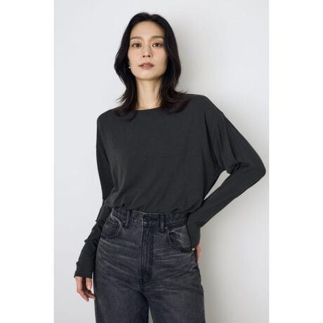 ■シアーカットトップス■ポイント軽やかな透け感が魅力の、ゆったりシルエットのシアーTシャツ。抜け感のあるデザインで、シンプルながらトレンド感のあるスタイリングが楽しめる1枚です。■ディテールゆったりとしたシルエットで身体のラインを拾いにくく、リラックス感のある着用感。程よい透け感がレイヤードスタイルを引き立て、インナーとの組み合わせでさまざまな表情を楽しめます。シンプルなデザインで、デイリーに取り入れやすいアイテムです。■スタイリングキャミソールやタンクトップをインナーに合わせたレイヤードスタイルがおすすめ。デニムやカーゴパンツと合わせたカジュアルスタイルはもちろん、スラックスやスカートと合わせて女性らしく着こなすのも◎。軽やかな素材感で、シーズンムードを高めてくれるトップスです。■生地全方向に非常に伸びが良く、かつ型崩れしにくい素材です。40番手というやや細めの糸で編まれているため、薄手で軽く上品でクリーンな透け感がありつつも独特のフィット感があるのでストレスフリーな着心地です。甘編みなので、生地のひっかけに注意してください。また、生地の一部にネップが発生していることがありますが、生地の特性です。透け感:あり裏 地:なし伸縮性:あり光沢感:なし[注意事項]※画像の商品はサンプルです。実際の商品と仕様、加工が若干異なる場合があります。※画像の商品は光の照射や角度、お使いのモニター環境により、実物と色味が異なる場合がございます。※着用、お取り扱いの際は、アテンションタグをご確認ください。