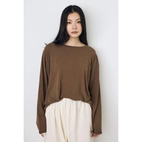 ■シアーカットトップス■ポイント軽やかな透け感が魅力の、ゆったりシルエットのシアーTシャツ。抜け感のあるデザインで、シンプルながらトレンド感のあるスタイリングが楽しめる1枚です。■ディテールゆったりとしたシルエットで身体のラインを拾いにくく、リラックス感のある着用感。程よい透け感がレイヤードスタイルを引き立て、インナーとの組み合わせでさまざまな表情を楽しめます。シンプルなデザインで、デイリーに取り入れやすいアイテムです。■スタイリングキャミソールやタンクトップをインナーに合わせたレイヤードスタイルがおすすめ。デニムやカーゴパンツと合わせたカジュアルスタイルはもちろん、スラックスやスカートと合わせて女性らしく着こなすのも◎。軽やかな素材感で、シーズンムードを高めてくれるトップスです。■生地全方向に非常に伸びが良く、かつ型崩れしにくい素材です。40番手というやや細めの糸で編まれているため、薄手で軽く上品でクリーンな透け感がありつつも独特のフィット感があるのでストレスフリーな着心地です。甘編みなので、生地のひっかけに注意してください。また、生地の一部にネップが発生していることがありますが、生地の特性です。透け感:あり裏 地:なし伸縮性:あり光沢感:なし[注意事項]※画像の商品はサンプルです。実際の商品と仕様、加工が若干異なる場合があります。※画像の商品は光の照射や角度、お使いのモニター環境により、実物と色味が異なる場合がございます。※着用、お取り扱いの際は、アテンションタグをご確認ください。