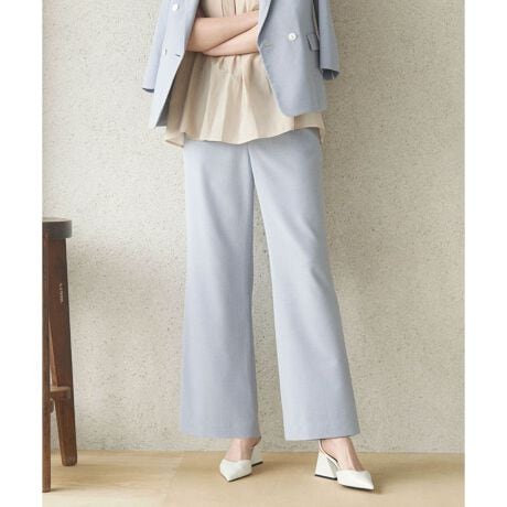 「BOURGE」が提案する、洗練された大人の佇まいを演出するフルレングスのストレートパンツです。股上をやや深めに設定することで、腰回りを品よく包み込み、脚長効果を叶える美しいシルエットを構築。ウエストの後ろ部分のみをゴム仕様に仕上げることで、フロントの端正な見た目を損なわず、リラックスした穿き心地を追求しました。肌離れの良いさらりとした素材感が現代的な抜け感を添え、日常のコーディネートを知的にクラスアップしてくれるワードローブに欠かせない一本です。
