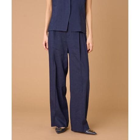 ■デザイン2タックデザインと自然に広がるセミワイドシルエットで分量感がありつつも、ヒップ周りをコンパクトにすることで女性らしいメリハリのあるバランスに。ミニマルな印象でどんなスタイリングにも馴染み、幅広いシーンで活躍してくれる万能なアイテム。小柄な方も高身長な方も綺麗に穿いていただけます。フラットシューズやスニーカーでも美脚になれるパンツです。■素材メゾン系ブランドも手がけるイタリアのメーカー、ポンテトルトのファブリックを採用。通気性や吸湿性に富む夏に最適な原料麻を縦糸に100%使用、強撚ヴィスコースストレッチと組み合わせることで清涼感あふれるタッチ(肌触り)とコンフォートネス(ストレッチ)も加えたオールマイティに使用頂けるSummerCompactPlain。・裏地無し・ポケットあり・ウエスト後ろゴム仕様同素材のダブルブレストジャケット品番:7160141013同素材のスペンサージャケット品番:7160141014同素材のジレ品番:7160182013■サンプル撮影商品画像の商品はサンプルです。実際の商品とはサイズや色味、素材、デザイン等の仕様が若干変更になる場合がございます。■カラーについては、可能な限り実際の商品に近いカラーで撮影をおこなっておりますが、照明の関係により実際の製品とは色味が違って見える場合があります。またパソコン・スマートフォンなどの環境により、若干製品と画像のカラーが異なる場合もございます。現物と画像のカラー差異については返品理由となりませんので、予めご了承ください。■サイズ表記はあくまで目安となります。
