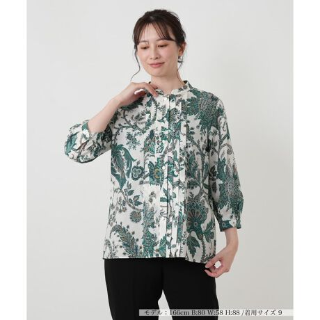 マルイウェブチャネル   /   レリアン   /   トップス   /   ブラウス   /   ペイズリー柄七分袖バンドカラーブラウス【ROCHAS Premiere】【RATTI】
