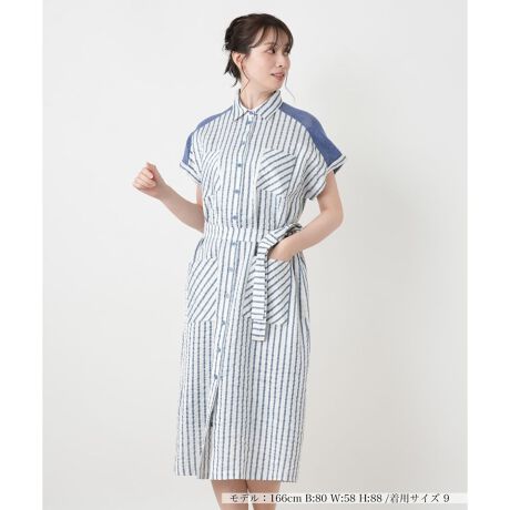 清涼感溢れるストライプに、肩周りの編地切り替えやバイヤス取りした4つのポケットがアクセントを添えるワンピースです。麻とレーヨンの混紡素材を使用しており、特有のシャリ感と滑らかな落ち感が春夏にふさわしい軽やかな着心地を叶えます。共布のベルトは取り外しが可能で、ウエストを絞ってレディライクに、外してリラクシーなサックシルエットにと気分に合わせたアレンジを楽しめるのがポイント。一枚でスタイリングが完成する大人のデイリーユースに最適なアイテムです。