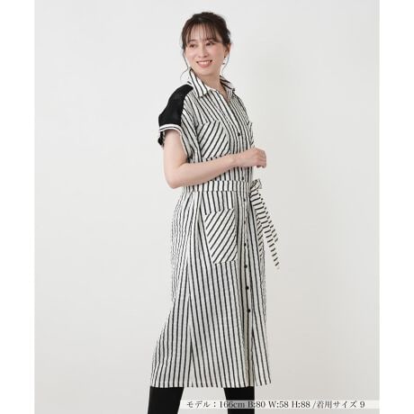 清涼感溢れるストライプに、肩周りの編地切り替えやバイヤス取りした4つのポケットがアクセントを添えるワンピースです。麻とレーヨンの混紡素材を使用しており、特有のシャリ感と滑らかな落ち感が春夏にふさわしい軽やかな着心地を叶えます。共布のベルトは取り外しが可能で、ウエストを絞ってレディライクに、外してリラクシーなサックシルエットにと気分に合わせたアレンジを楽しめるのがポイント。一枚でスタイリングが完成する大人のデイリーユースに最適なアイテムです。