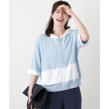 色味を抑えた爽やかなカラーリングが目を惹く、「HAND」の配色切替の五分袖パーカです。肌に優しい上質なコットン素材を使用しており、さらりとした快適な肌触りで日常のあらゆるシーンに心地よく寄り添います。フロントや袖口にあしらった切り替えがお顔周りを明るく見せ、スポーティーな中に上品で都会的なニュアンスをプラス。絶妙な丈感の五分袖は気になる二の腕をカバーしつつ、軽やかな印象を与えてくれるのが魅力です。大人のカジュアルスタイルを品よく、そして爽やかに彩る贅沢な一着に仕上がっています。