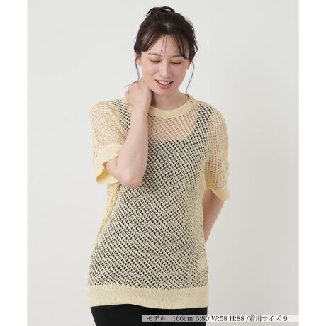 清涼感溢れる透かし編みで仕立てた、「HAND」のドルマンスリーブニットトップスです。繊細なメッシュ状の編み地が美しい透け感を生み出し、インナーとのレイヤードを軽やかに楽しめます。ゆったりとしたシルエットはリラックスした着心地ながらも、手首やウエスト周りをすっきりと見せてくれるのがポイント。爽やかな色合いが日常のコーディネートに春夏の瑞々しいアクセントを添えてくれます。大人のカジュアルスタイルに抜け感を与えてくれる、これからの季節にふさわしい贅沢な一枚です。
