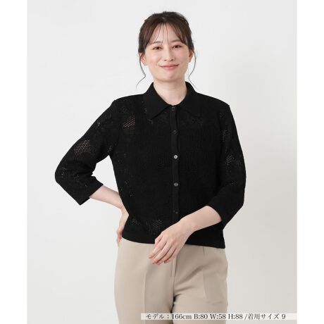 透かし編み襟付きカーディガン