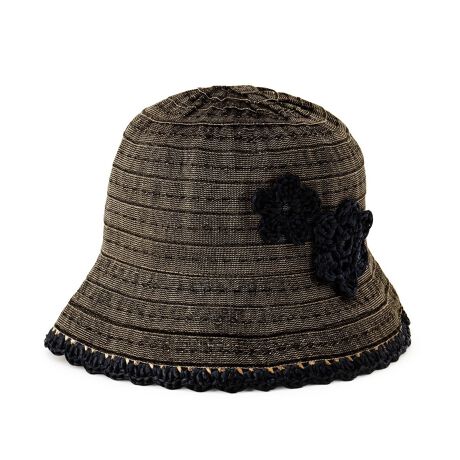 イタリアの帽子ブランド「FERRUCCIO VECCHI」が手掛ける、繊細なブレード編みが美しいクロッシェです。麻をベースにした清涼感のある混紡素材を使用しており、軽やかで蒸れにくい、快適な被り心地を実現しました。サイドに配した立体的なフラワーモチーフと縁取りのコントラストが、落ち着いたトーンの中に上品な可愛らしさを添えてくれます。コンパクトなシルエットながら、取り入れるだけで顔周りをエレガントかつモダンな印象に引き締めてくれるのが魅力。日常の外出から特別な日のスタイリングまで、大人の女性の品格を際立たせてくれる上質な一品です。