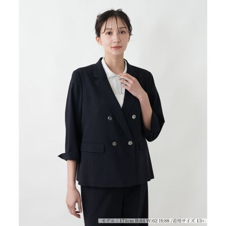 きちんと感と女性らしさを両立した、ノーカラーの七分袖ブレザー。正統派のノッチドラペルが、フォーマルな場にふさわしい端正な表情を作り出します。手首が見える七分袖は、堅苦しくなりすぎず、軽やかで優雅な印象を与えます。シンプルな無地のデザインは、合わせるワンピースやブラウスの色柄を選ばず、着回し力も抜群。セレモニーや会食など、品格が求められるシーンで活躍します。ご自宅でお手入れできるイージーケア性も兼ね備え、いつでも清潔な状態を保てるのが嬉しいポイント。羽織るだけで、背筋がすっと伸びるような一着です。