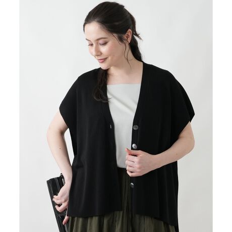 上品な光沢感のある糸を使用したニットベスト。ゴム地にすることで編み端が無いスッキリとした仕様になっています。サイドにスリットを入れたリラックス感のあるデザインです。