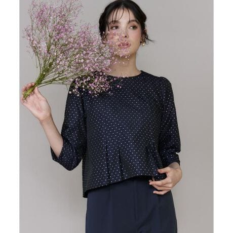 ■デザイン上品なラメ糸を贅沢に使用したドットジャガードトップス。細かな光沢がきらりと揺れ、日常から特別なシーンまで華やかに見せてくれる一枚です。フロントとバックに入れたタックデザインが、立体的で女性らしいフォルムを演出。さらに、後ろを長めに仕立てた前後差のあるフレアラインで、気になる腰まわりも上品にカバーしながら軽やかな動きをプラスします。ショート丈なので、ハイウエストボトムとの相性は抜群。同素材のスカートと合わせれば、上品セットアップとして即コーデが完成。お食事会やパーティーなどや、デイリーのきれいめスタイルまで幅広く活躍します。■素材先染め高密度ポリエステルタフタのドット柄ジャガード。ドット部分をラメ糸にすることで、上品な素材でありながらも華やかな素材。合繊の産地、福井産で適度な肉感の高見え素材なのに軽やかさがあり、またハリとコシがあるので美しいシルエットが出せるのもこの素材の魅力です。・裏地あり・後ろファスナーあり・水洗い可同素材のスカート品番:5162152005■サンプル撮影商品画像の商品はサンプルです。実際の商品とはサイズや色味、素材、デザイン等の仕様が若干変更になる場合がございます。■カラーについては、可能な限り実際の商品に近いカラーにて撮影をおこなっておりますが、照明の関係により実際の製品とは色味が違って見える場合があります。またパソコン・スマートフォンなどの環境により、若干製品と画像のカラーが異なる場合もございます。現物と画像のカラー差異については返品理由となりませんので、予めご了承ください。■サイズ表記はあくまで目安となります。