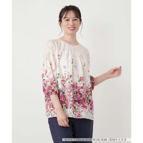 フラワー柄タックギャザーブラウス【ROCHAS Premiere】