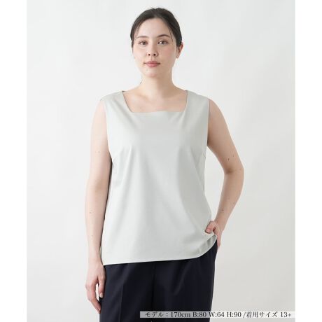 上品なつやが特徴のスムースジャージーのスクエアネックインナーです。首回りをエレガントに演出しジャケットインとしてもシャープに決まります。前身頃を二枚重ねにし下着のラインが出にくく、衿ぐりや裾はノーステッチでカットソーでもキレイ目に見えるTシャツっぽさを感じさせない一枚です。