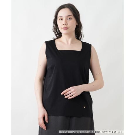 上品なつやが特徴のスムースジャージーのスクエアネックインナーです。首回りをエレガントに演出しジャケットインとしてもシャープに決まります。前身頃を二枚重ねにし下着のラインが出にくく、衿ぐりや裾はノーステッチでカットソーでもキレイ目に見えるTシャツっぽさを感じさせない一枚です。