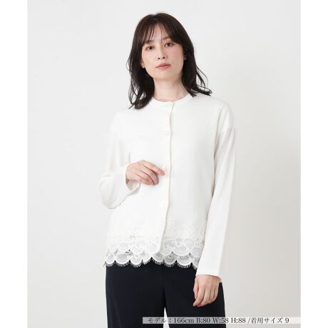 レースレイヤードクルーネックカーディガン