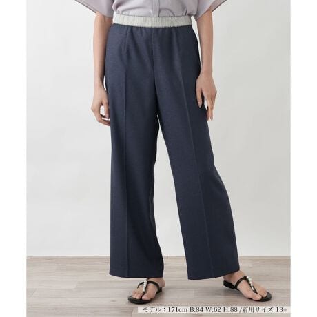 まるで麻のような涼しげな風合いを持つ、センタープレス入りのきれいめパンツ。ウエスト部分にはインポート素材のゴムベルトを使用し、快適な穿き心地とデザイン性を両立しました。脚のラインをまっすぐ美しく見せるセンタープレスが、スタイルアップを叶えます。裏地には夏でも涼しくお召しいただける素材を採用し、肌触りも爽やか。ご自宅でのお手入れも可能で、汗ばむ季節も気兼ねなく着用できます。ブラウスと合わせてオフィスに、カットソーと合わせて休日のきれいめカジュアルにと、オンオフ問わず活躍する汎用性の高い一本です。