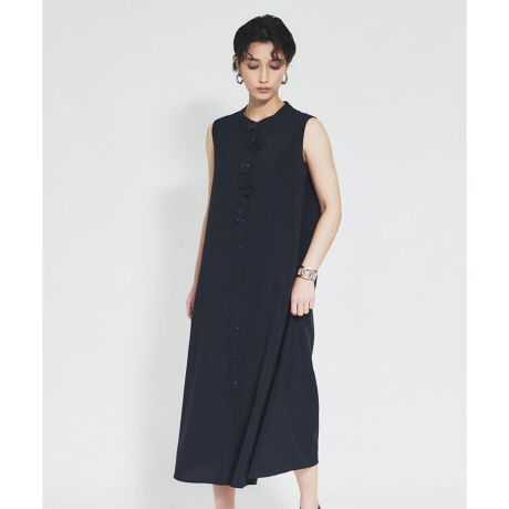 「BOURGE」が提案する、フロントに配された立体的なフラワーモチーフが気品を漂わせるノースリーブサックワンピースです。すとんと落ちるようなシルエットも相俟って、大人の女性にふさわしい上品な佇まいと抜け感を演出。上から7番目までのボタンは開閉が可能で、着脱しやすさとともに胸元にニュアンスを加える実用的な設計に。透け感を気にせず安心して纏えるアンダースカート付きなのも嬉しいポイント。一枚で主役級の華やぎを放ち、日常のコーディネートを品よくドラマチックに格上げしてくれるアイテムです。