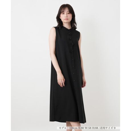 「BOURGE」が提案する、フロントに配された立体的なフラワーモチーフが気品を漂わせるノースリーブサックワンピースです。すとんと落ちるようなシルエットも相俟って、大人の女性にふさわしい上品な佇まいと抜け感を演出。上から7番目までのボタンは開閉が可能で、着脱しやすさとともに胸元にニュアンスを加える実用的な設計に。透け感を気にせず安心して纏えるアンダースカート付きなのも嬉しいポイント。一枚で主役級の華やぎを放ち、日常のコーディネートを品よくドラマチックに格上げしてくれるアイテムです。