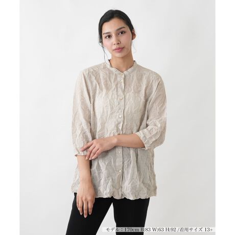 クリーンな魅力が際立つ、シンプルな無地の羽織ブラウス。凛としたスタンドカラーが知的な雰囲気を醸し出し、顔周りをシャープに見せてくれます。軽やかな素材感は、初夏の季節に心地よく、カーディガン感覚で気軽に羽織れるのが魅力。気になる二の腕をカバーしつつ、手首に抜け感を作る七分袖も嬉しいポイントです。前を開けてラフに着流したり、ボタンを留めてきちんとした印象で着こなしたりと、着こなしの幅も広がります。ご自宅でのお手入れも簡単で、日々のワードローブで活躍すること間違いなし。ワンピースやタンクトップの上に重ねて、爽やかなレイヤードスタイルをお楽しみください。