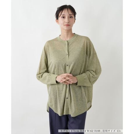季節の変わり目に重宝する、シンプルな長袖カーディガン。どんなコーディネートにも馴染む無地のデザインは、ワードローブに一枚あると大変便利です。すっきりとした前立てと襟元のデザインが、洗練された印象をプラス。冷房対策としてオフィスに常備したり、旅行のお供にしたりと、様々なシーンで活躍します。長袖なので日差しが気になる時にもさっと羽織れて安心。ワンピースの上に重ねてフェミニンに、あるいはTシャツとパンツのカジュアルスタイルにプラスして、品の良いアクセントとしてお楽しみください。