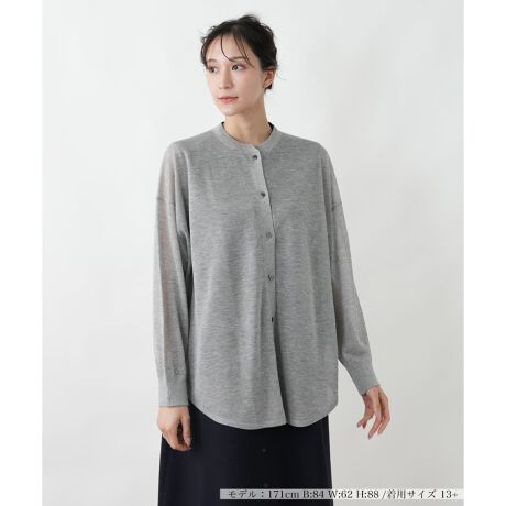季節の変わり目に重宝する、シンプルな長袖カーディガン。どんなコーディネートにも馴染む無地のデザインは、ワードローブに一枚あると大変便利です。すっきりとした前立てと襟元のデザインが、洗練された印象をプラス。冷房対策としてオフィスに常備したり、旅行のお供にしたりと、様々なシーンで活躍します。長袖なので日差しが気になる時にもさっと羽織れて安心。ワンピースの上に重ねてフェミニンに、あるいはTシャツとパンツのカジュアルスタイルにプラスして、品の良いアクセントとしてお楽しみください。