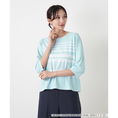 爽やかなボーダー柄が初夏の気分を盛り上げる、七分袖のサマーセーター。カジュアルな印象のボーダーも、上質な素材と洗練された配色で、大人の女性にふさわしい上品な一枚に仕上がっています。顔周りをすっきりと見せるノーカラーの丸首デザインと、軽やかな七分袖が、涼しげでクリーンな印象を演出。一枚でコーディネートの主役になる華やかさがありながら、派手になりすぎない絶妙なバランスが魅力です。デニムと合わせてフレンチシックに、白いパンツと合わせてマリンテイストにと、様々な着こなしをお楽しみください。着るだけで心が弾むような、楽しい一枚です。