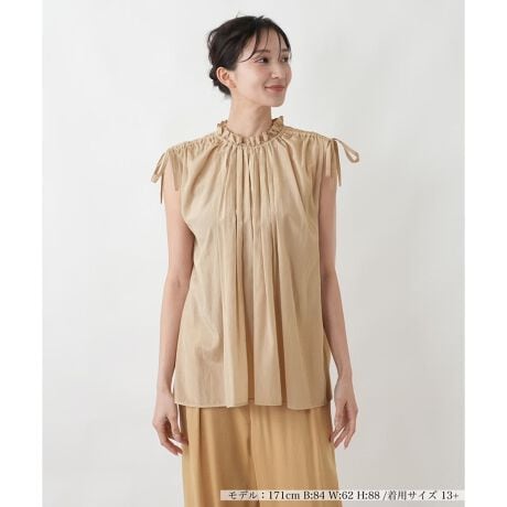 ジャケットのインナーに最適な、スタンドカラーのフレンチスリーブブラウス。凛としたスタンドカラーが首元をすっきりと見せ、クリーンで知的な印象を与えます。肩先を優しく覆うフレンチスリーブは、気になる二の腕をさりげなくカバーしつつ、涼やかさも確保。シンプルな無地のデザインは、どんなジャケットとも相性が良く、コーディネートを品良くまとめてくれます。ご自宅でのお手入れも簡単で、汗をかく季節にも気兼ねなくお召しいただけます。フォーマルなセットアップのインナーとしてはもちろん、一枚で着ても上品に決まる、着回し力の高いアイテムです。