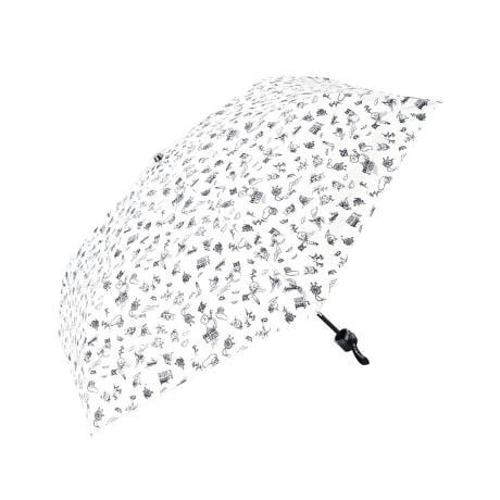 世界の風景や切手をモチーフにしたスタンプ柄が全面に施され、どこかノスタルジックで知的な雰囲気を醸し出す折り畳み傘。裏面には遮光・遮熱効果に優れたポリウレタン樹脂加工が施されており、日差しが強い日も涼しく快適に過ごせます。晴雨兼用タイプのため、急な天候の変化にもこれ一本でスマートに対応可能です。同柄の収納ポーチには可愛らしいリボンがあしらわれ、バッグの中でも存在感を放つ実用的なアイテムに仕上げられています。