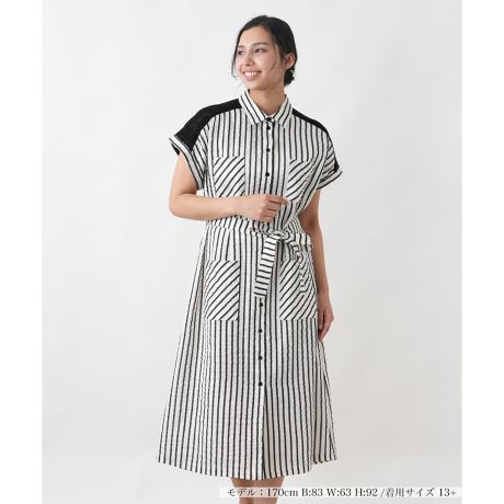 イタリアのブランド「SHE'S SO」から届いた、爽やかなストライプ柄のシャツワンピース。ミセス世代の体を美しく見せることに定評のあるブランドならではの、計算されたシルエットが魅力です。知的な印象のシャツカラーと、涼やかな半袖のデザインが初夏にぴったり。付属のベルトでウエストをマークすれば、メリハリのある女性らしいラインが生まれます。編みの技術を駆使した上質な素材感は、纏うだけで心を満たしてくれるはず。一枚でさらりと着て、休日のランチやショッピングにお出かけしたくなるような、特別なワンピースです。