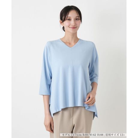さりげない表情が魅力の、無地ライクな七分袖セーター。一見シンプルながらも、編み地の変化によって豊かなニュアンスが生まれ、一枚で着ても単調にならないのが特徴です。デコルテを美しく見せるノーカラーの丸首デザインは、どんなネックレスとも相性抜群。手首がのぞく七分袖が、軽やかさと女性らしい抜け感を演出し、涼しげな印象を与えます。体のラインを拾いすぎない絶妙なシルエットで、着痩せ効果も期待できるかもしれません。きれいめのスカートからカジュアルなパンツまで、合わせるボトムスを選ばない着回し力の高さも魅力。初夏から秋口まで長く活躍する一枚です。