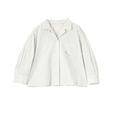 コットンに麻をブレンドした清涼感のある素材を使用し、さらりと軽やかな肌触りに仕上げたオープンカラーシャツ。シンプルなストライプをベースに、襟元と胸ポケットへ可憐な花の刺繍を施すことで、マニッシュな中にも女性らしい柔らかな表情をプラス。ゆったりとした身幅のボックスシルエットがリラックスした着心地を叶え、大人のカジュアルスタイルにこなれた印象を与えてくれます。羽織りとしてもバランスよく決まり、着丈で真夏まで幅広く活躍する一枚です。