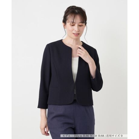 洗練されたミニマリズムが光るノーカラージャケット。上質なコットン素材を使用した凹凸感のある生地が、カッチリしすぎない柔らかな気品と快適な着心地を両立しました。前立てはシンプルな鍵ホック仕様で、無駄を削ぎ落としたクリーンなフロントが都会的なムードを醸し出します。手首をすっきりと見せる袖口のスリットが軽やかな抜け感を与え、オフィスからオケージョンまで幅広いシーンで活躍。さらりと羽織るだけで大人の女性にふさわしいクラス感のあるスタイルが完成します。
